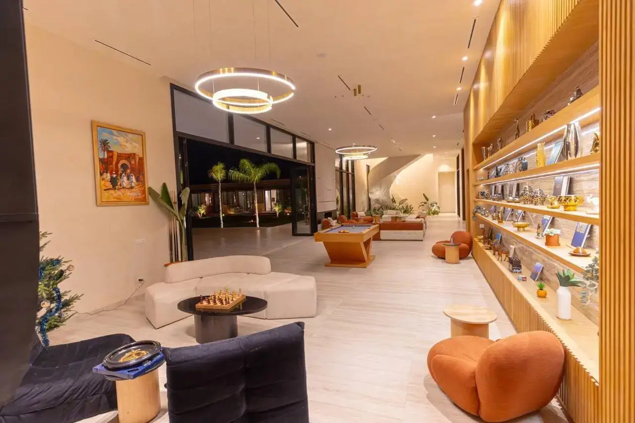 Des salons intérieurs élégants et spacieux, idéals pour des soirées chaleureuses ou des moments de partage.