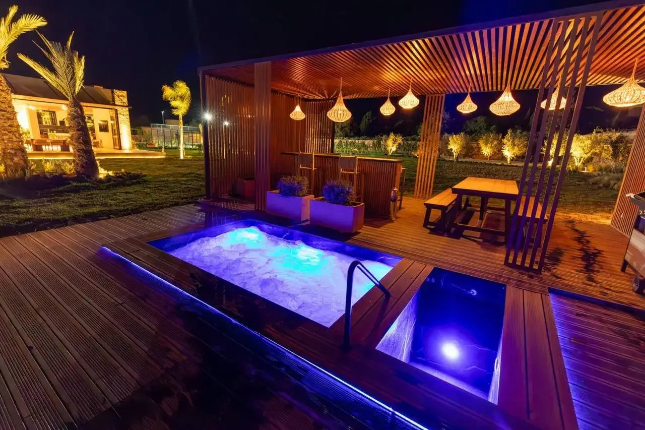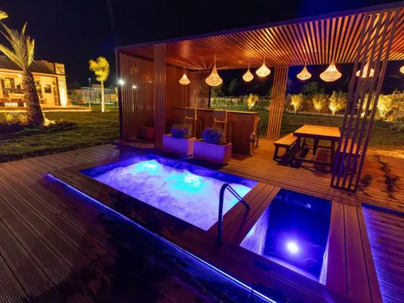 Un espace bien-être complet avec jacuzzi chauffé, sauna et bains de glace pour une détente totale.