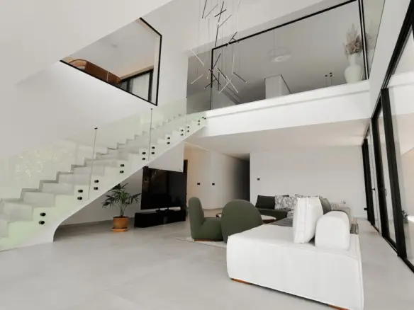 • Un vaste salon avec cuisine américaine aux volumes spectaculaires, favorisant lumière et convivialité.