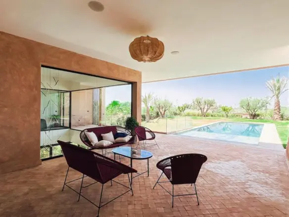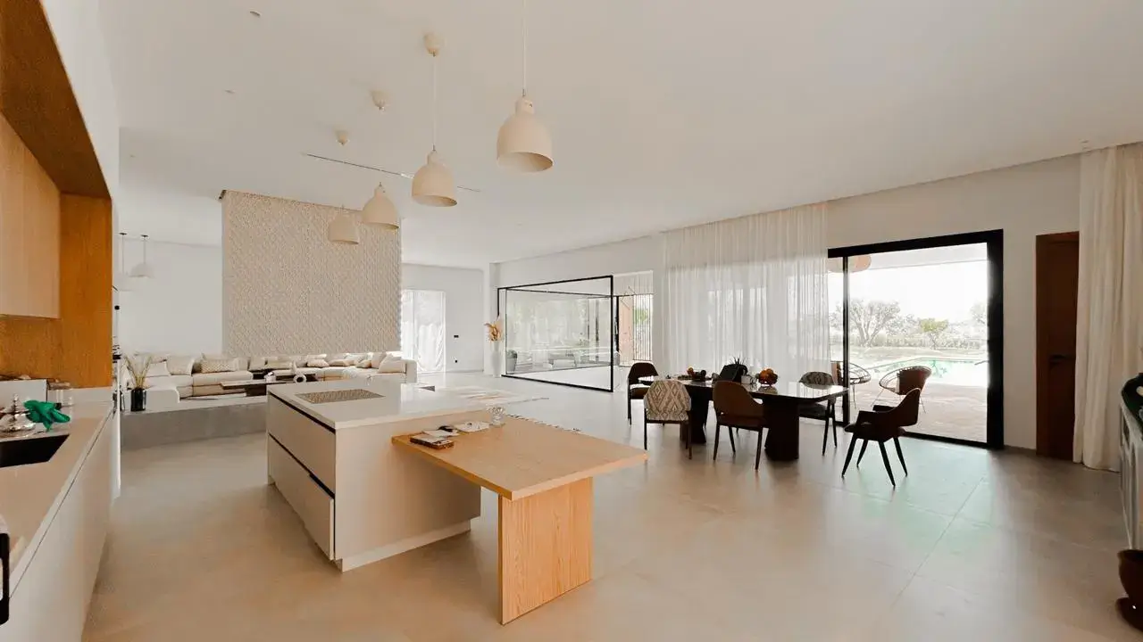 Chaque ligne, chaque perspective a été travaillée pour sublimer l’architecture et offrir une atmosphère où élégance et fonctionnalité se conjuguent harmonieusement. Véritable chef-d’œuvre contemporain, cette villa représente l’excellence de l’immobilier de prestige à Marrakech.